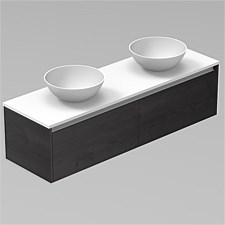 LeVivi Capri 1800mm Solid Surface Wall-Hung Vanity with Round Vessel Basins Charred Oak