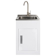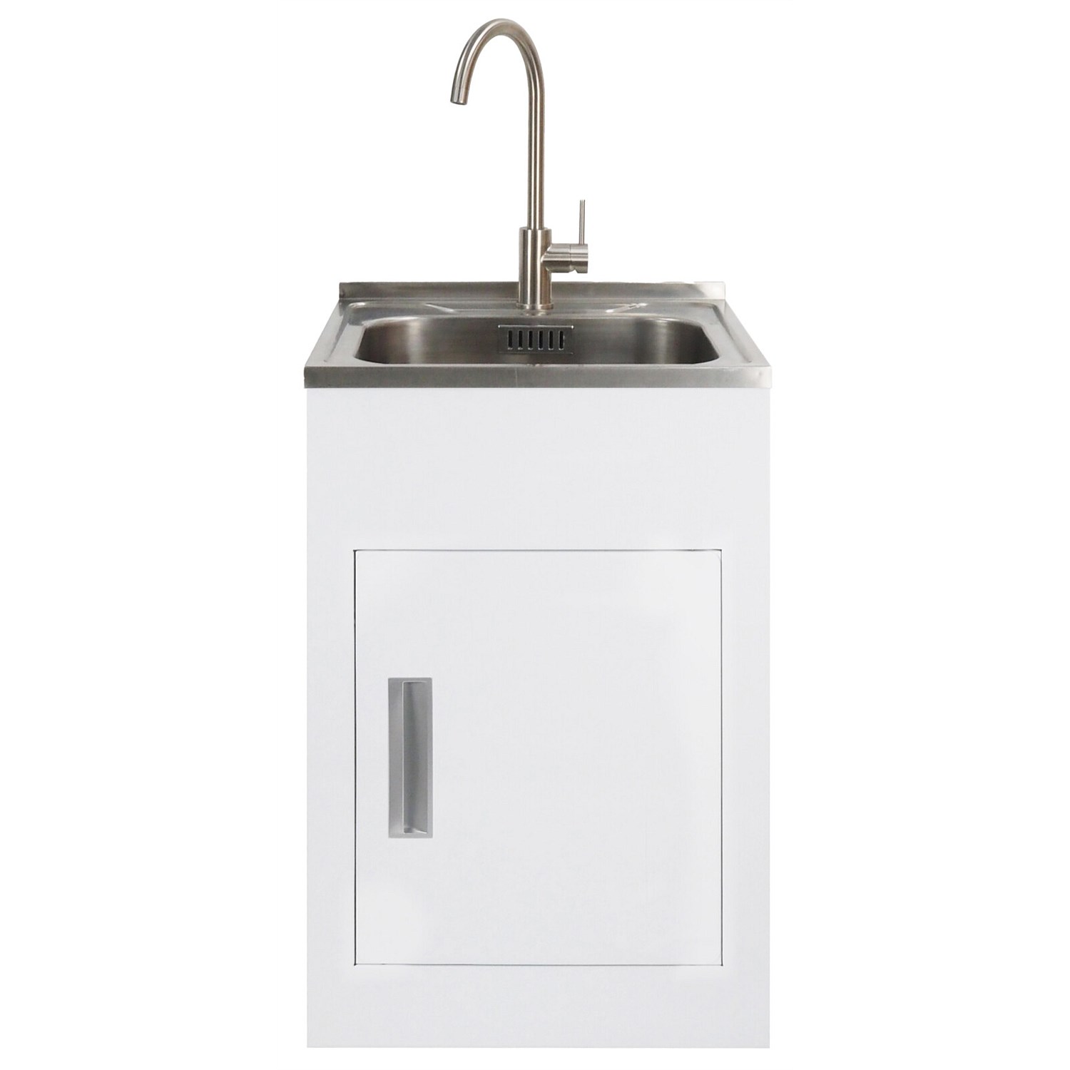 LeVivi LaundraStudio Tub and Cabinet with Brushed Stainless Steel Gooseneck Mixer