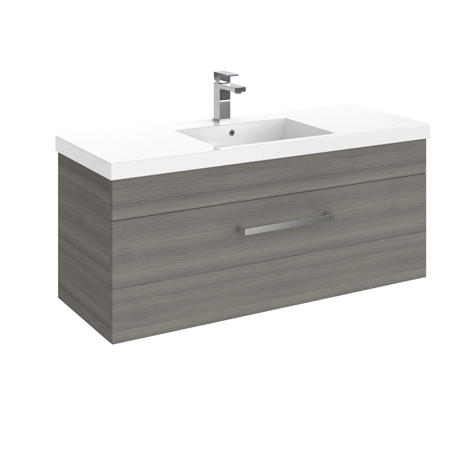 Elementi Sienna 1200mm Graphite Concrete Top Double 2 Drawer Wall-Hung Vanity Ashen Walnut Timberlan