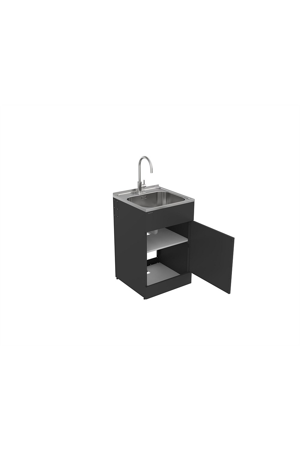 This standard Supertub features a 28L seamless stainless steel tub with integrated basket waste and modern overflow design plus a lead-free gooseneck pressure tap. The cabinet is made from galvanised steel finished with a matt black power-coat and features a cupboard with reversible door. A fantastic addition to your laundry space.