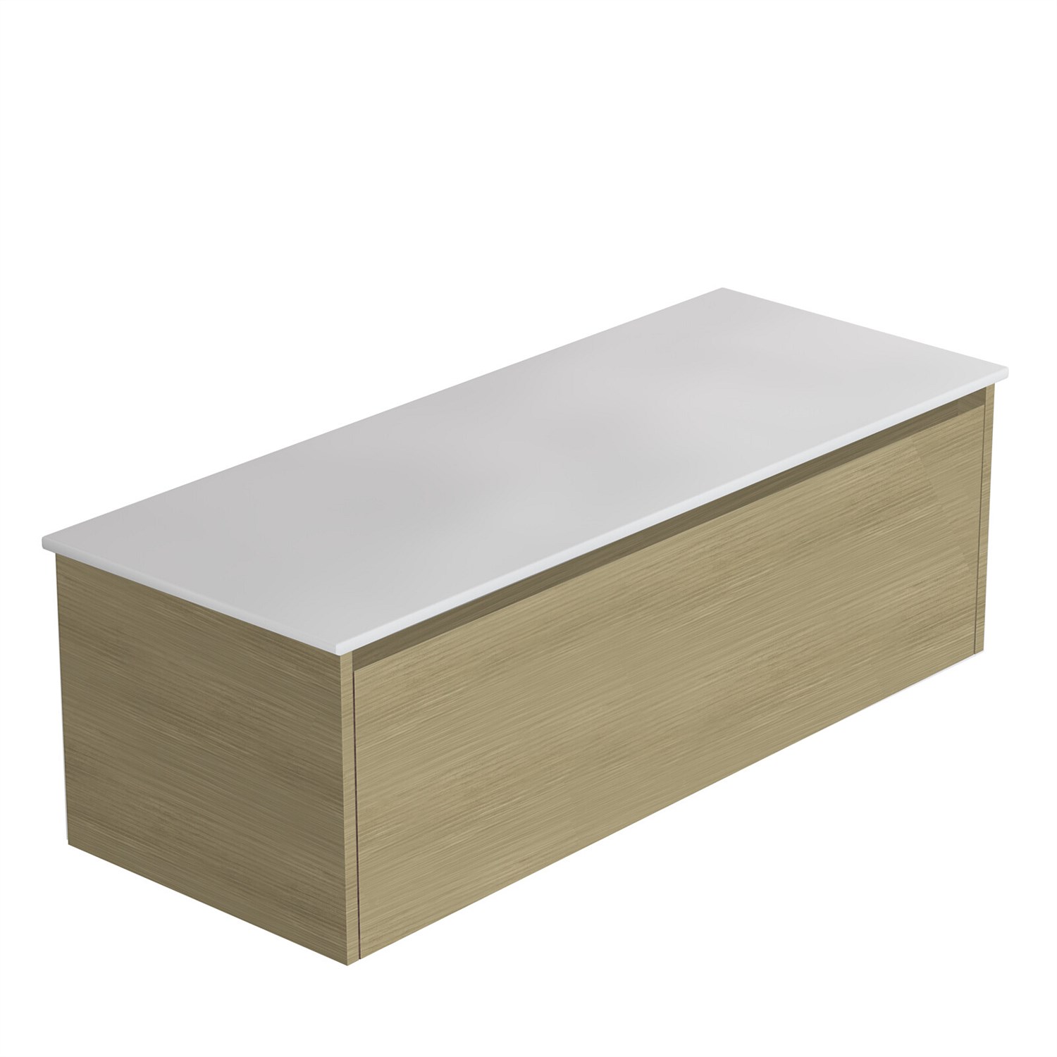 LeVivi Cibolo Prima 1200mm Wall-Hung Vanity in Light Oak finish. Stylish, durable and moisture resistant with a soft-close drawer and solid surface top. Perfect for modern NZ bathrooms, 7-10-year warranty. Exclusive to Plumbing World.