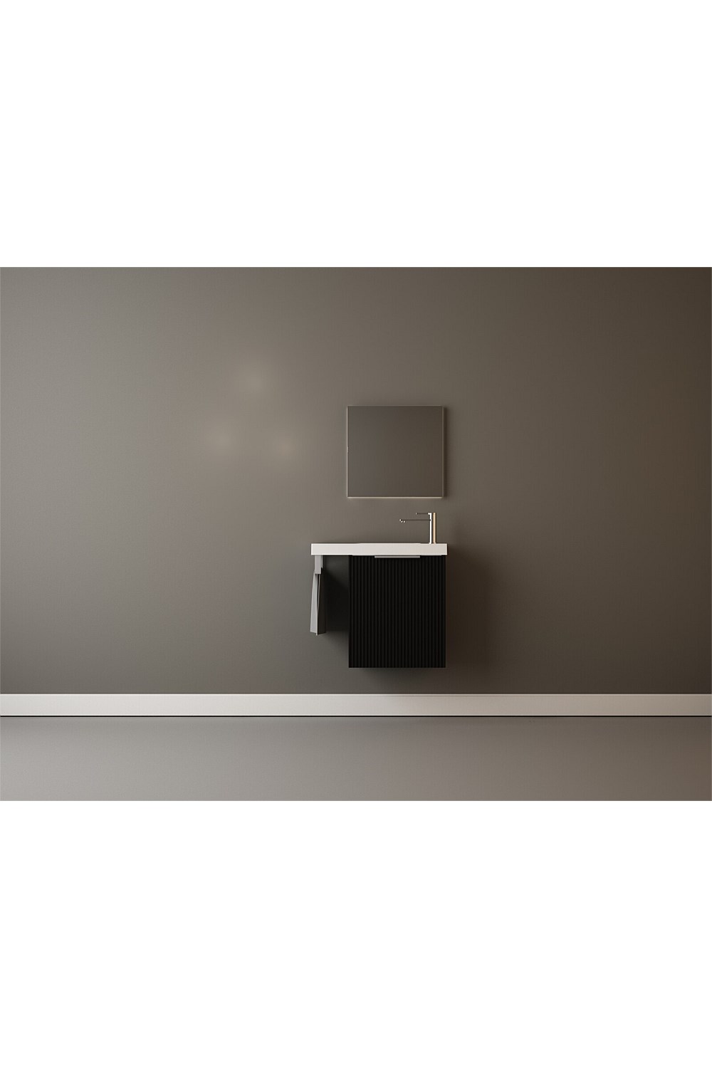 LeVivi Positano Extension 600mm Wall-hung Ensuite Vanity with Towel Rail & Left Hand Door Matt Black