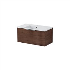LeVivi Positano Wall Hung 900mm Vanity Solid Surface Single Drawer Walnut