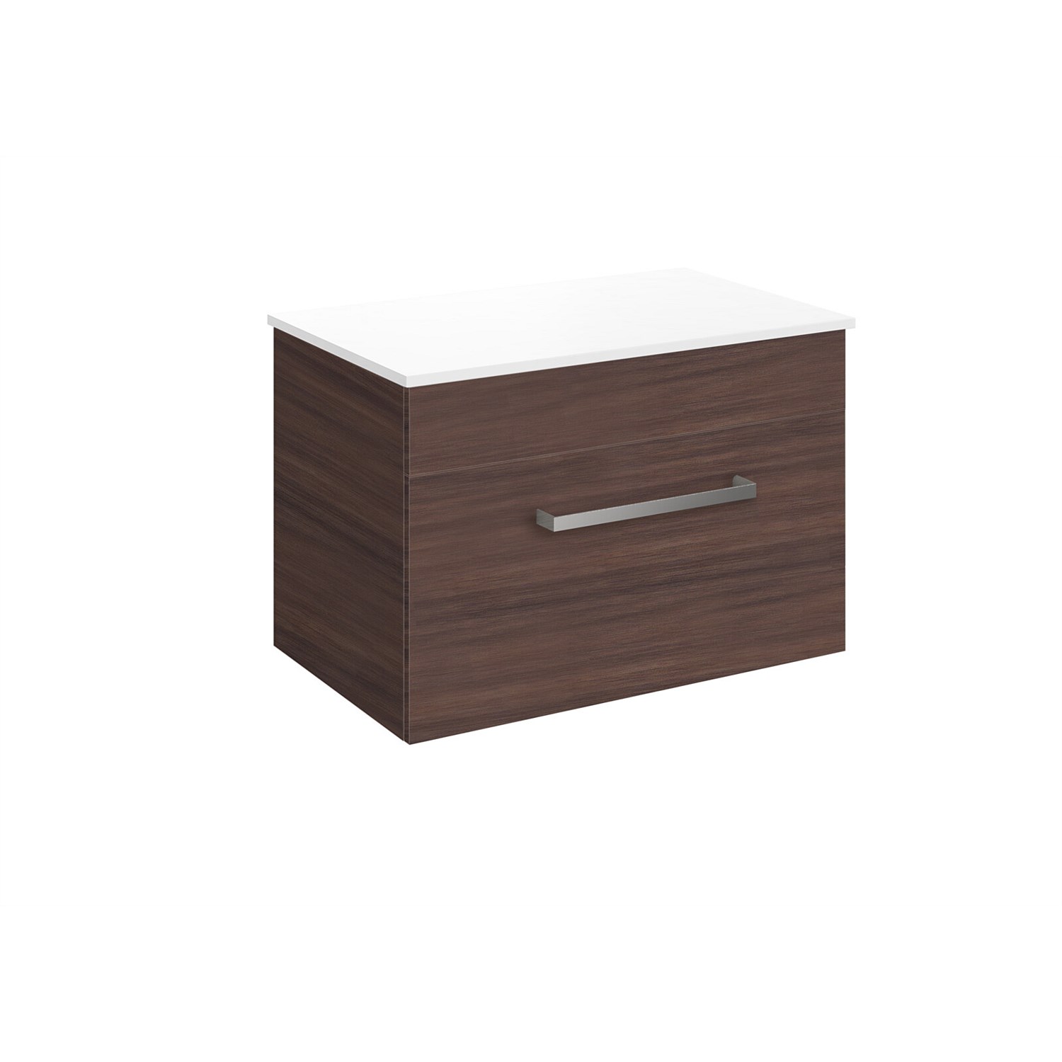 LeVivi York Prima 750mm Wall-Hung Vanity in Walnut finish. Sleek design, soft-close drawers, durable build, moisture-resistant and solid surface top. Perfect for stylish, functional NZ bathrooms, 7-10-year warranty. Exclusive to Plumbing World.