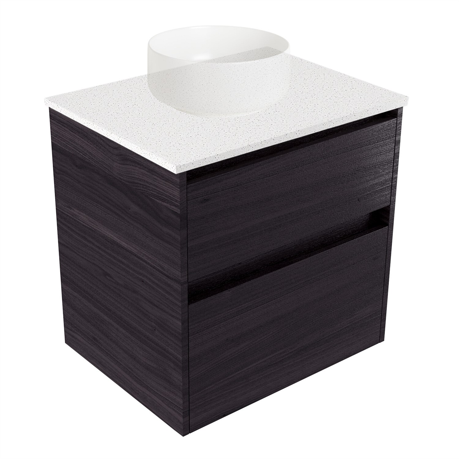 Elementi Sienna 600mm 2 Drawer Wall-Hung Vanity Motion Elestone Flat Top Fiordland Elm Wilderness
