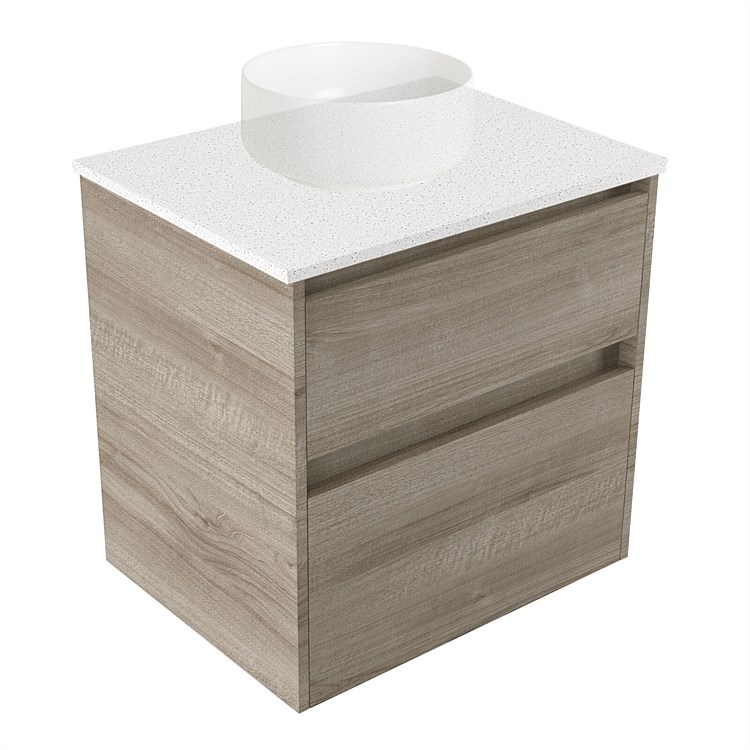 Elementi Sienna 600mm 2 Drawer Wall-Hung Vanity Motion Elestone Flat Top Ashen Walnut Timberland