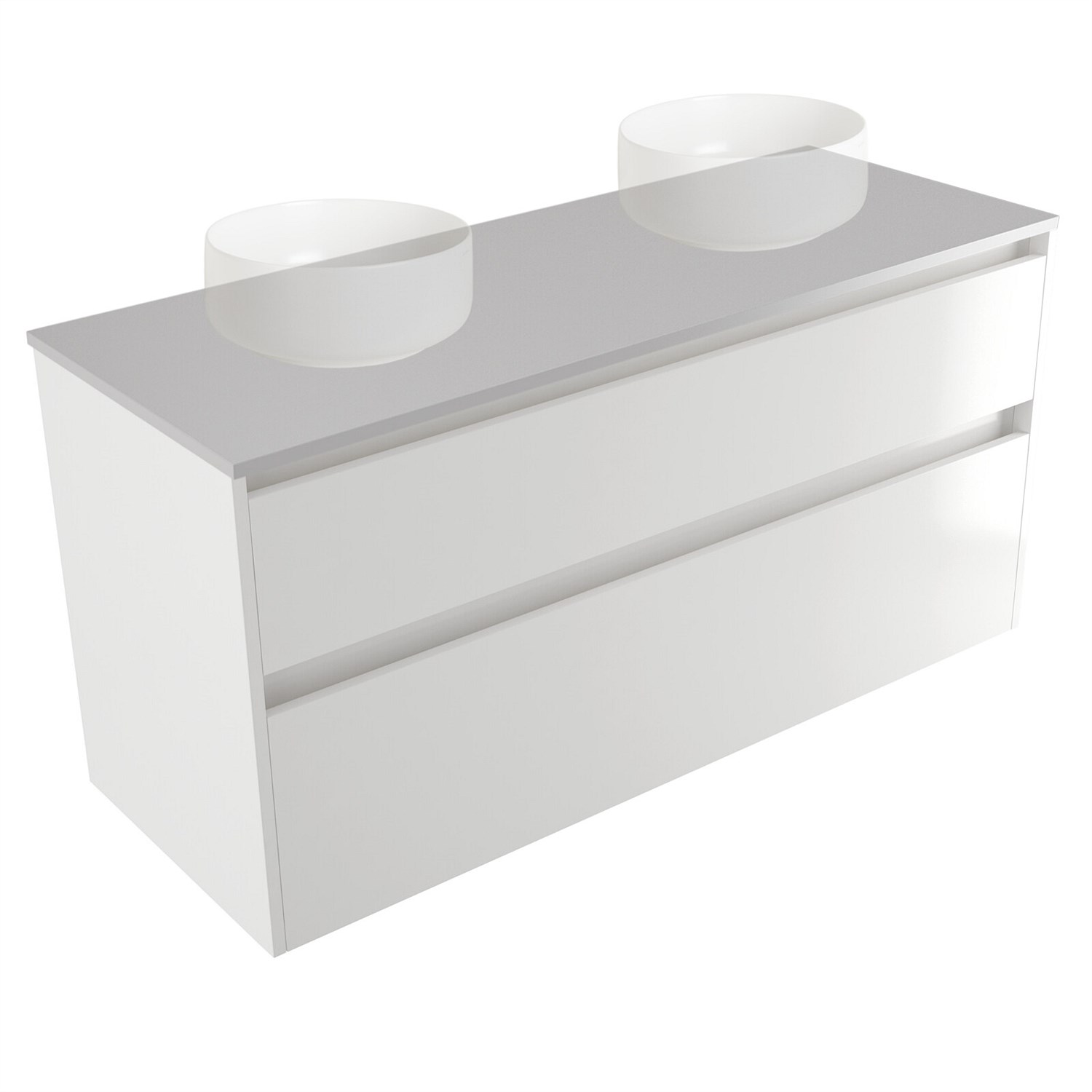 Elementi Sienna 1200mm Double 2 Drawer Wall-Hung Vanity Moonlight Elestone Flat Top White Gloss