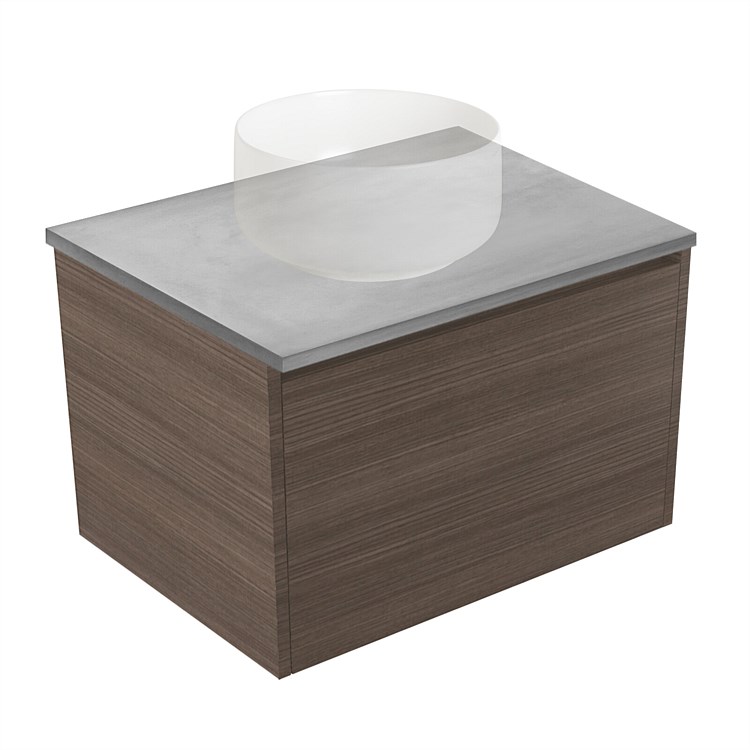 Elementi Sienna 600mm Grey Concrete Top 2 Drawer Wall-Hung Vanity Charred Oak