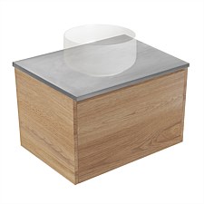Elementi Sienna 600mm Grey Concrete Top 2 Drawer Wall-Hung Vanity Southern Oak Timberland