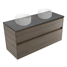 Elementi Sienna 1200mm Graphite Concrete Top Double 2 Drawer Wall-Hung Vanity Smokey Oak Timberland