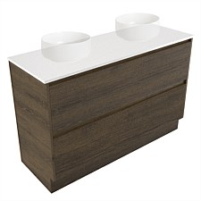Elementi Sienna 1200mm Double 2 Drawer Vanity Motion Elestone Flat Top Smokey Oak Timberland