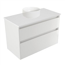 Elementi Sienna 900mm 2 Drawer Wall-Hung Vanity White Elestone Top White Gloss
