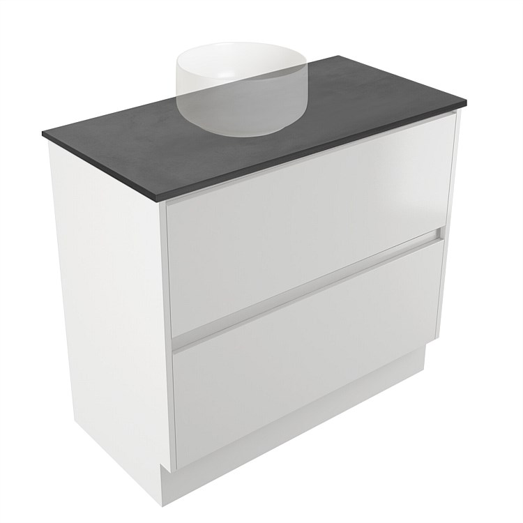 Elementi Sienna 900mm Graphite Concrete Top 2 Drawer Vanity White Gloss