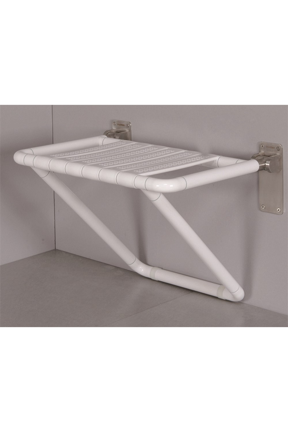 LeVivi 845mm Wall Mounted Shower Seat: Antibacterial, foldable, non-slip, with support leg. Stylish, durable, and exclusive to Plumbing World.